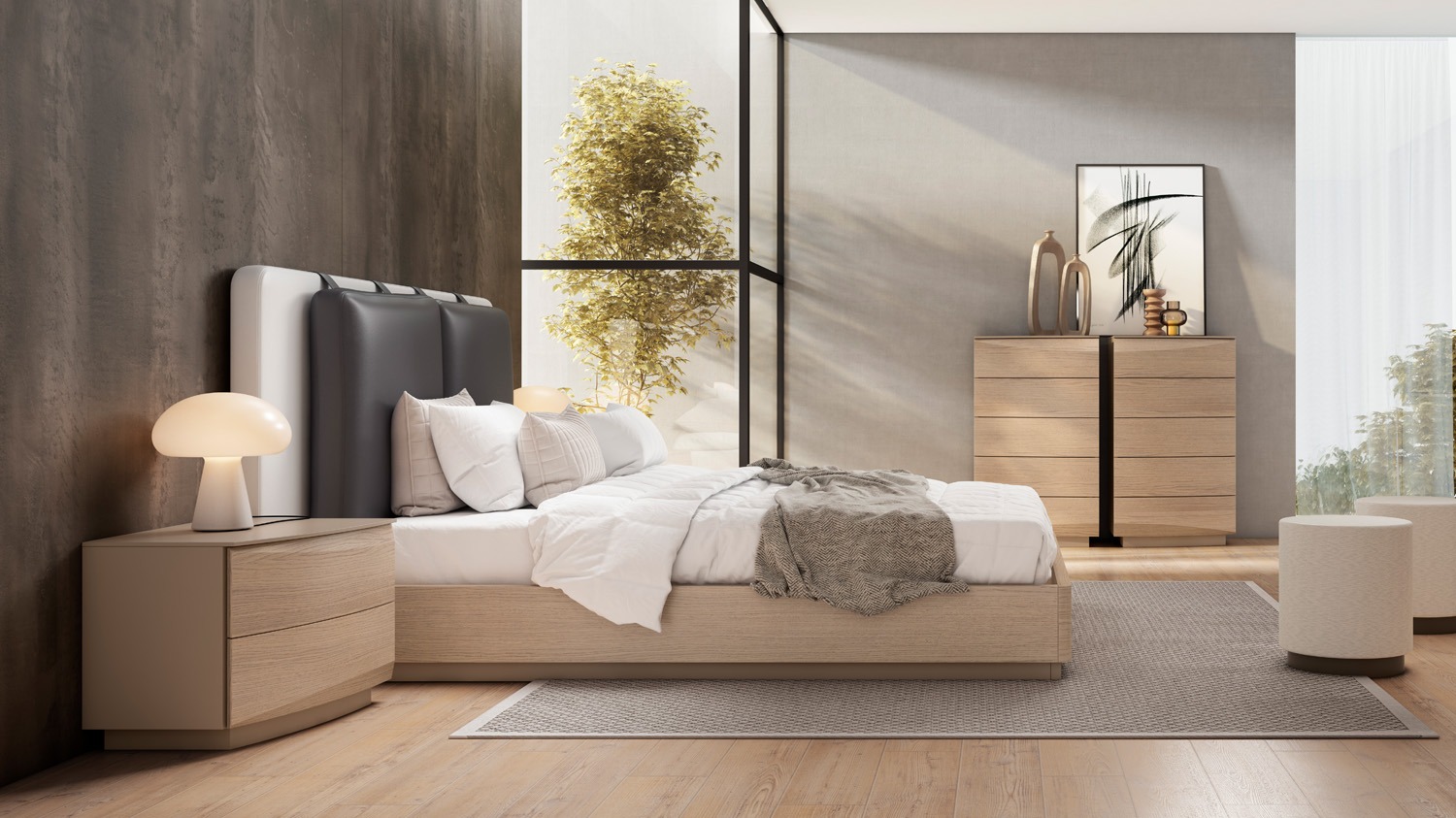 En Mueble3 Decoración te ofrecemos una cuidada selección de dormitorios de matrimonio que combinan estética, funcionalidad y calidad para crear ambientes equilibrados y acogedores.